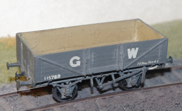 The first 17'6" long design with only a 9' wheelbase. An O24 from an ABS kit. The axle boxes and buffers were RCH standard rather than GWR designs.