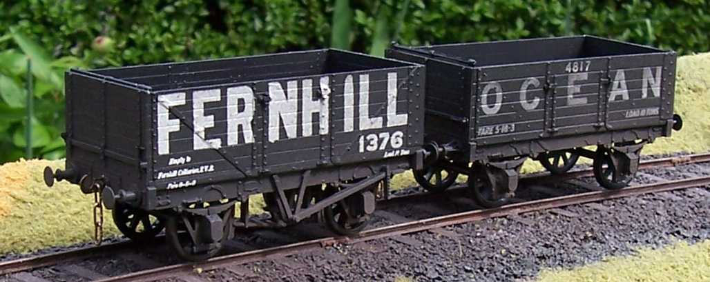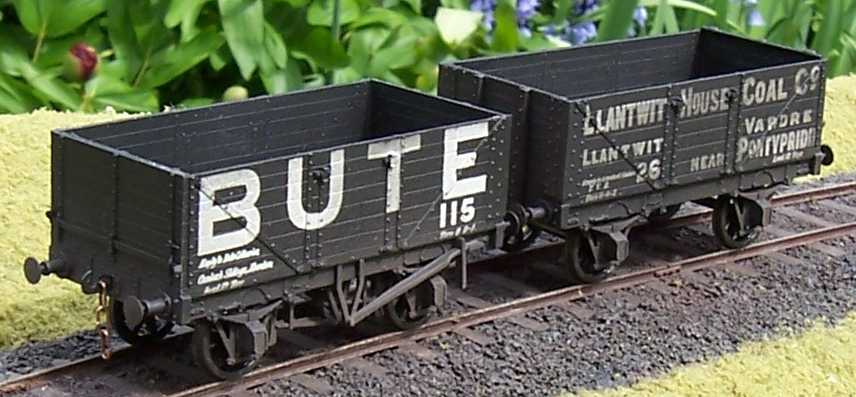 In South Wales, coal was generally transported from the colliery to the South Wales ports in wagons owned by the collieries. Here are some Private Owner Wagons I have built. They are all Slaters wagon kits. The Ocean wagon is pre-lettered by Slaters. The Bute and Llantwit have been pre-lettered by Dragon Models. The Fernhill wagon was lettered using Dragon Models transfers. They have all been weathered with black on the sides to represent the coal dust generated when loading and unloading. The chassis' have been weathered with a dark greyish brown to represent track dirt. |